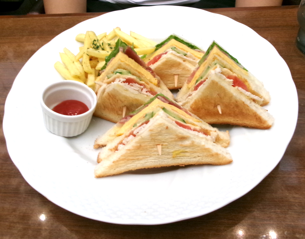 昼食は写真にあるように、星乃珈琲店という茨城県立図書館の中にある、カフェレストランで食事をしました。私たちは店の一番人気のクラブハウスサンド、肉汁がジューシーで口どけが甘いカツサンドを食べました。先生たちはシンプルで食べやすいパスタを食べたり、大きくて満足感のあるホットドックを食べました。味はあっさりしつつ生地が柔らかく、どれも食べやすい一品でした。星野珈琲店では図書館の館内ということもあり、食事中の席で本を読むことができるという特徴があり、各々の好きな本を持ってきて楽しく読むことができました。
