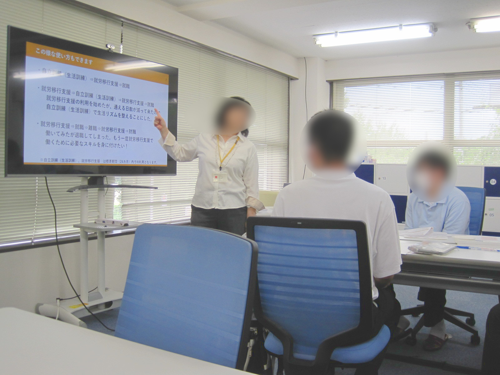 この見学では生活訓練と就労移行支援という2つの支援プログラムの事を学びました。